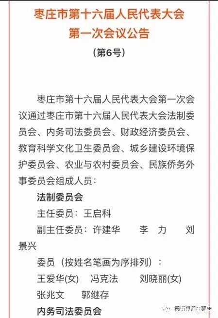 冯克法律师成为枣庄市第十六届人民代表大会法制委员会委员