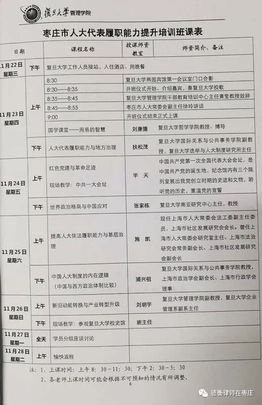 为提升人大代表履职能力,使人大代表更好行使广大选民授予的参政议政权利,2017年11月22日至28日,枣庄市人大常委会组织市人大常委、各专业委员会委员及部分市人大常委会工作人员在百年名校复旦大学举办了人大代表履职能力提升培训班,枣庄市人大常委会副主任徐玲带队参加学习并在开班仪式上讲话。