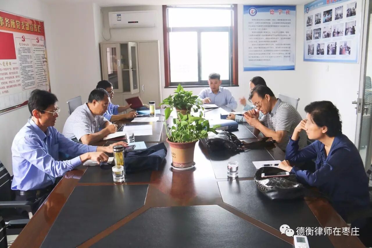 听取汇报后,钟福勤主任对我所的党建及“两学一做”学习教育常态化制度化开展情况进行了点评,对我所开展的多项卓有成效的工作表示肯定,但同时也就党建工作规范化建设提出了更高要求。殷延卿主任进行了总结点评,他对我所的文化建设和规范化建设表示了肯定,对我所三年来取得的快速发展表示了祝贺,并对我所将党建工作与律所发展、律师发展相结合的做法表示了肯定,希望我所进一步规范党建工作,积极将一心向党、符合党员条件的青年律师按照程序吸引到党组织中来,希望德衡枣庄所党支部各方面工作做的更好更扎实。