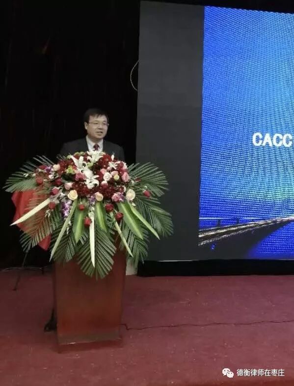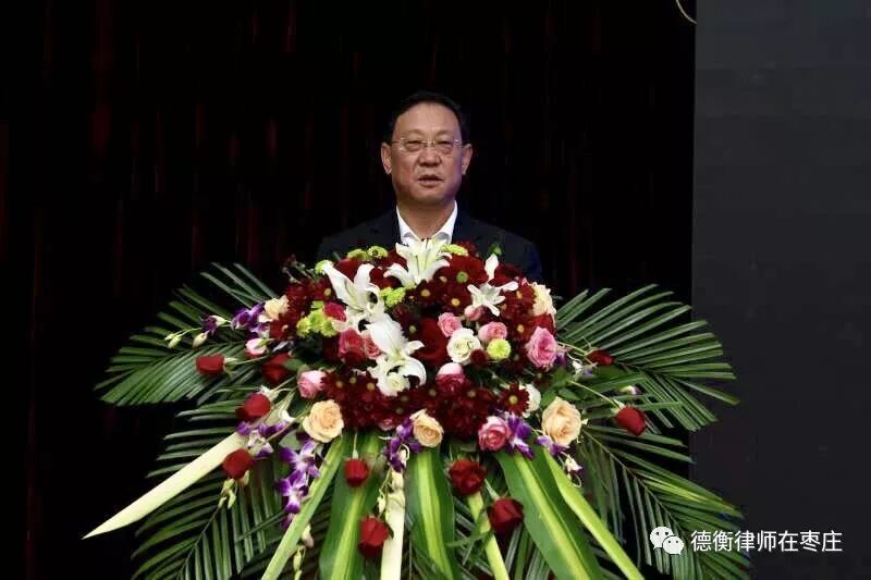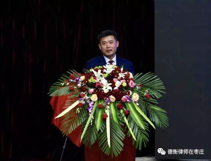 大会议程第三项,由枣庄市司法局党委书记、局长王业胜致辞。王局长从党的十九大精神的学习宣传、贯彻落实的高度,指出枣庄工作委员会的成立是落实依法治国基本方略的具体举措,并结合工作实际,强调了我市企业、社会发展对精准化、个性化、超市化的法律需求。王局长希望并要求CACC(枣庄)工作委员会一定要顺应时代发展,坚决贯彻党的路线方针政策,立足枣庄实际,为提高枣庄企业依法经营依法管理依法维权的水平和能力做出卓有成效的工作。王局长对山东德衡(枣庄)律师事务所成立三年来的工作给予了肯定,认为德衡所设立后带动了我市律师业的进一步发展,特别在提供资本证券、知识产权、政府与社会资本合作等领域提供了较高水平的法律服务,得到了社会和有关部门的认可。