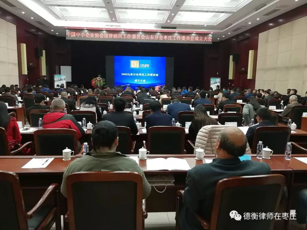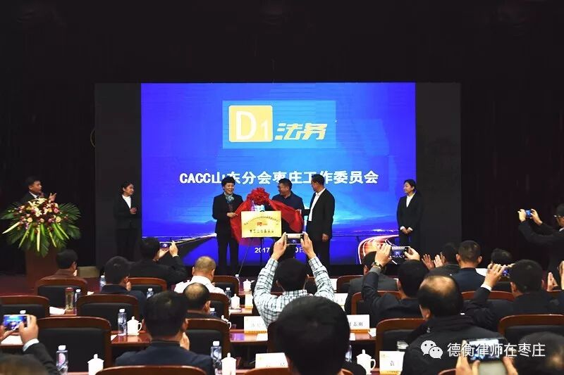 2017年11月10日上午,来自枣庄六区市的160家企业老总法总,市区部分主管部门领导嘉宾,CACC山东分会领导及山东德衡总所、山东德衡济宁分所、山东德衡枣庄分所部分律师代表共二百余人,齐聚金尊国际酒店二楼D会议厅,共同见证了中国中小企业协会法律顾问工作委员会(简称CACC,第一法务)山东分会枣庄工作委员会的成立盛况。