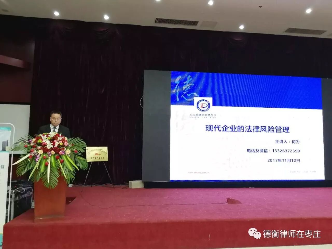 第一阶段结束。在短暂的茶歇后,大会进入了第二阶段,由枣庄委员会副秘书长、山东德衡(枣庄)律师事务所副主任何为律师为大会分享了《现代企业的法律风险管理》。何为副秘书长从现代企业的风险类型、管理理念、管理手段等多个方面进行了精彩分享。