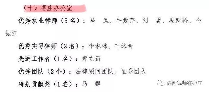 德衡律师集团2017年度表彰奖励 我所获奖名单