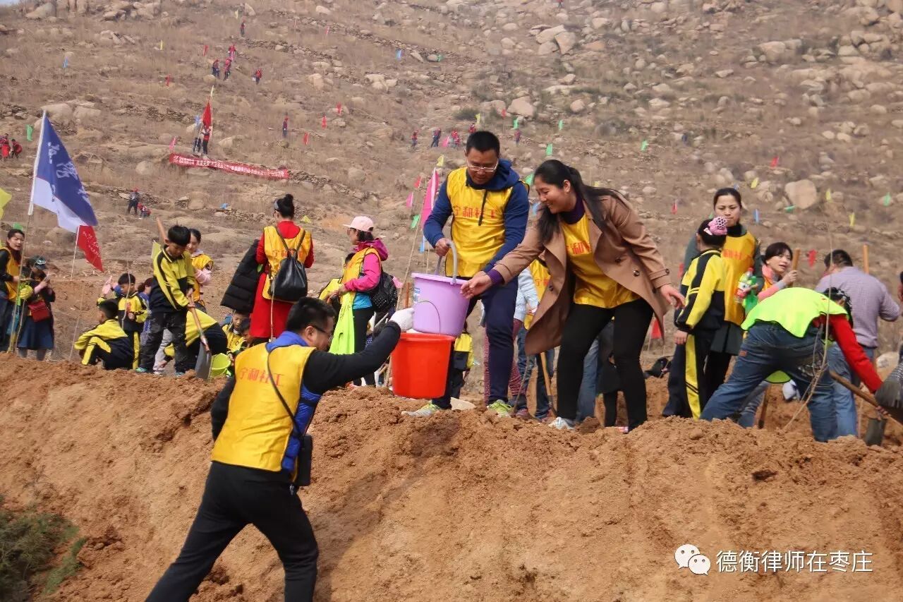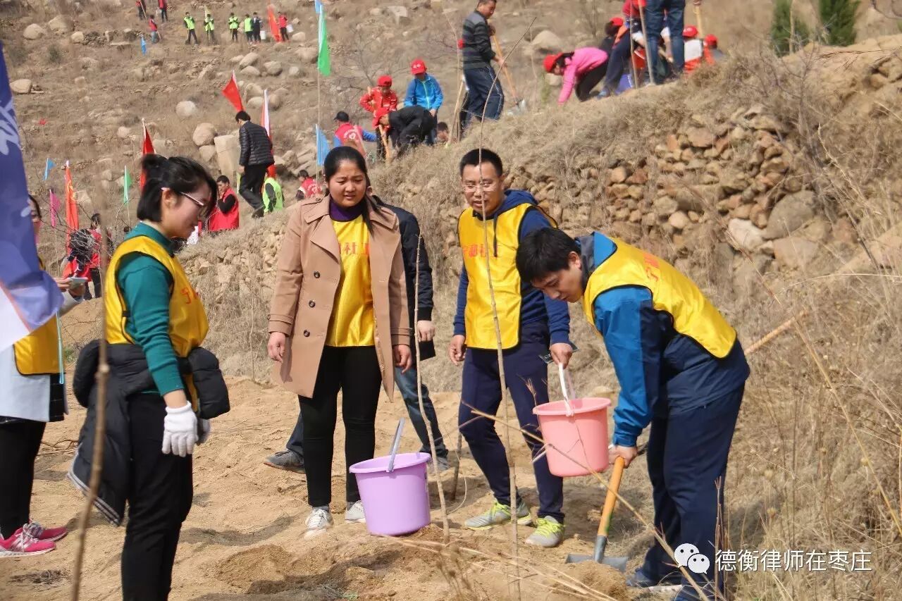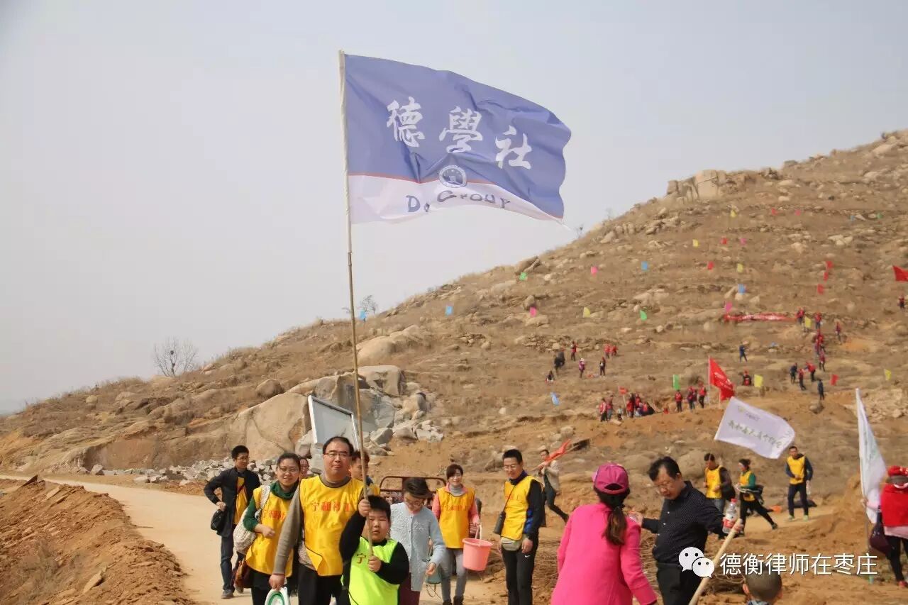 2017年3月11日早晨,在枣庄市团委的号召下,山东德衡(枣庄)律师事务所德学社的志愿者们前往枣庄市市中区集合,集体登车前往莲青山。他们和其他义工一起,一路欢歌笑语,在到达目的地短暂休整后,即在工作人员的带领下,开始了紧张的植树活动。