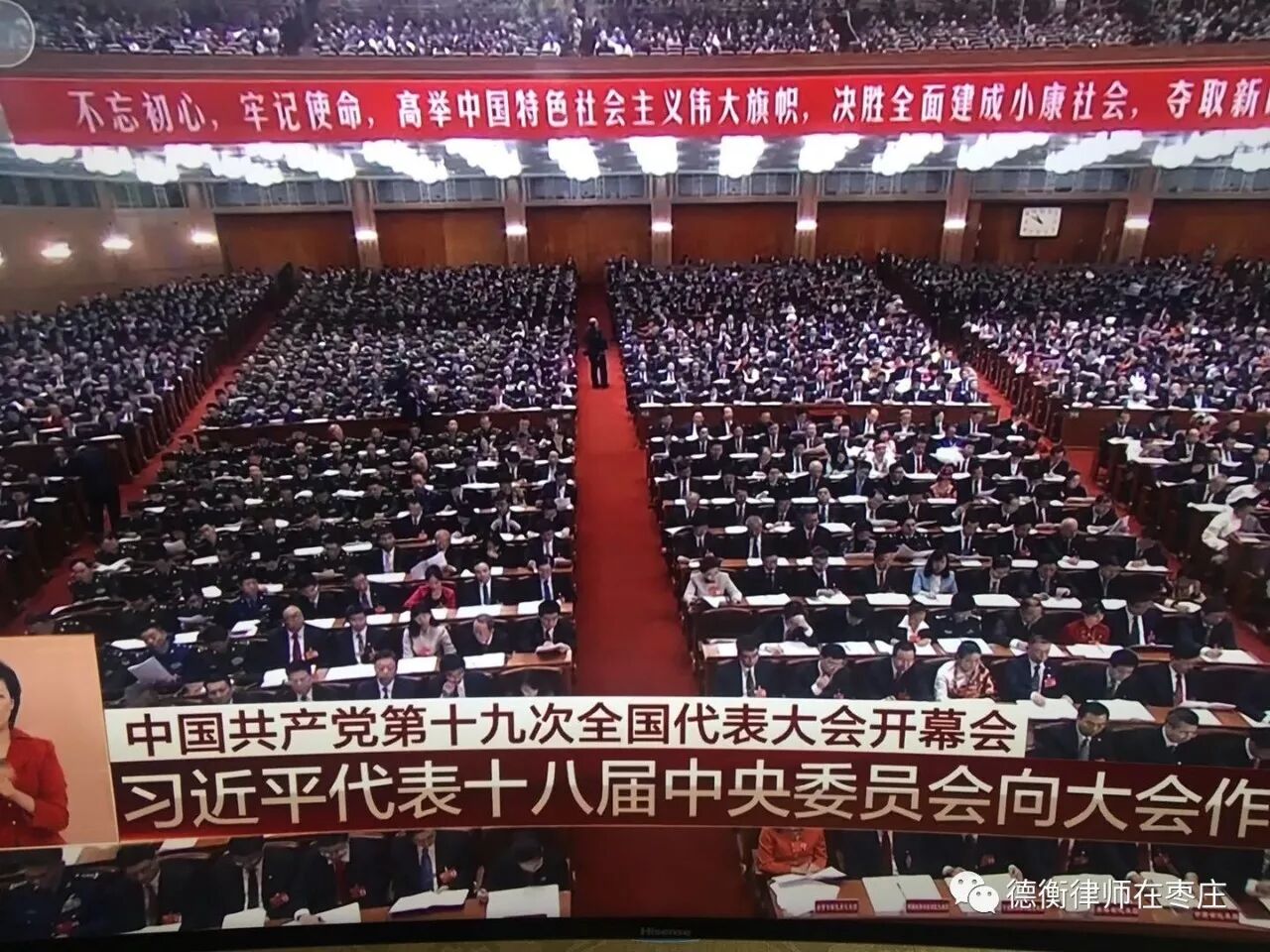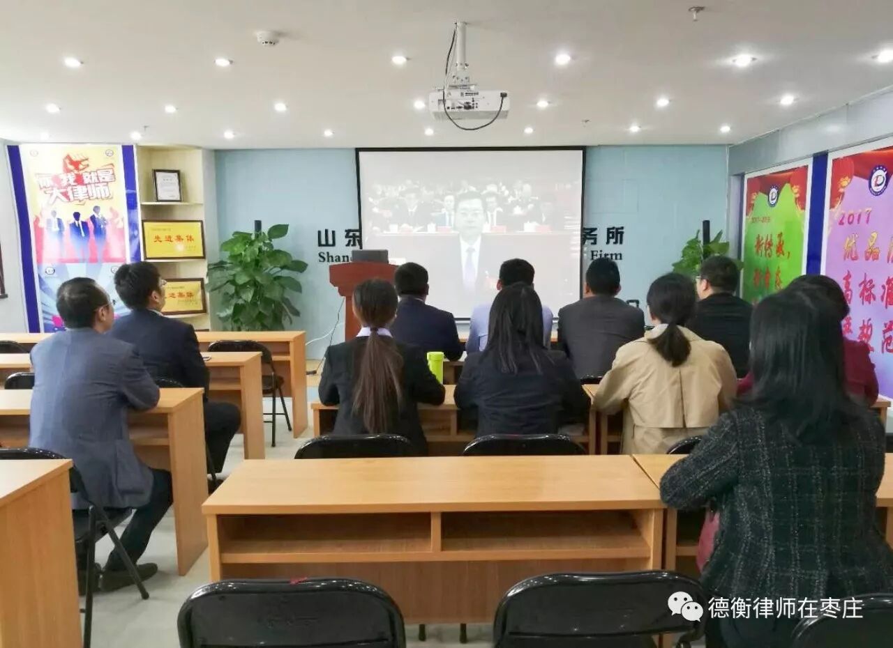 收看直播的律师们认真听取了习总书记代表十八届中央委员会所作的报告,深刻认识了此次大会的主题——“不忘初心,牢记使命,高举中国特色社会主义伟大旗帜,决胜全面建成小康社会,夺取新时代中国特色社会主义伟大胜利,为实现中华民族伟大复兴的中国梦不懈奋斗。”大家跟随习总书记回顾了十八大以来的五年里取得的成绩,明确未来的工作方向与战略,充满激动与自豪。