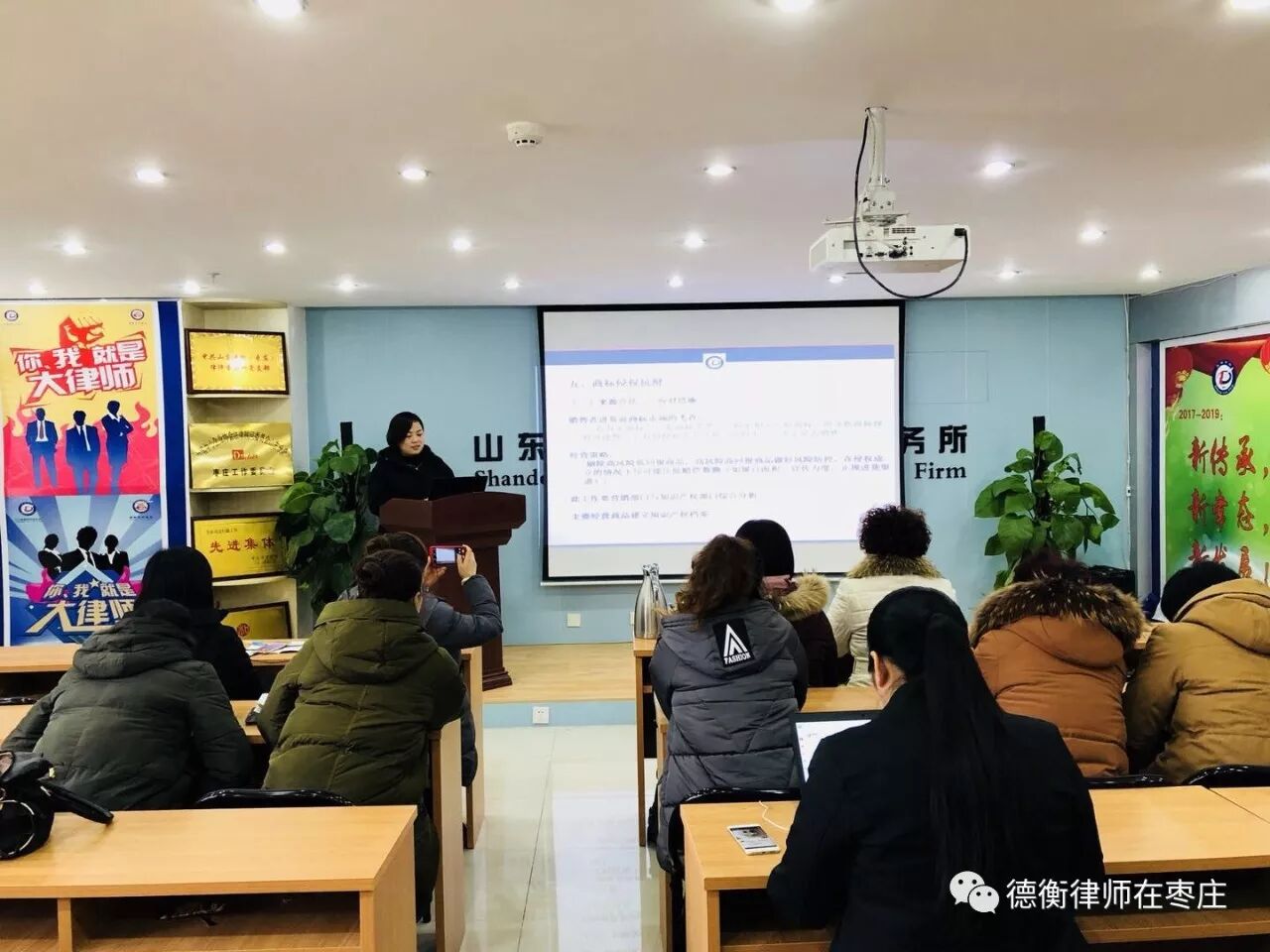 2017年12月14日下午,知识产权法律事务团队负责人牛爱芹律师为一分利超市人员讲授商标法律风险防控知识,多位业务经理来律所参加学习。