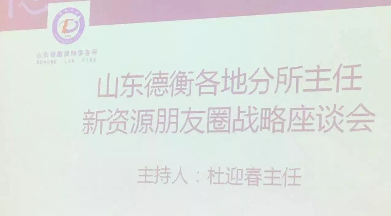 2018年1月12日上午,“山东德衡各地分所主任新资源朋友圈战略座谈会”在山东德衡济南办公室召开,德衡律师集团李旭修、杨培银、张兵、霍桂峰、朱江涛、郑延荣等领导,济南、北京、枣庄、德州、潍坊、东营、滨州、济宁、威海、烟台、日照、泰安等各地分所主任,以及应邀参会的部分律师代表参加了会议。