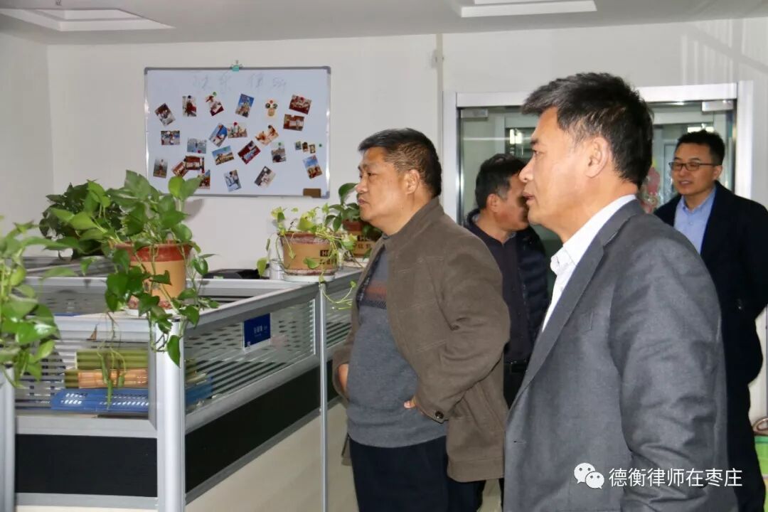 司品义副总法律顾问一行在参观了我所文化长廊、荣誉墙、党员活动室、视频会议室及办公场所、休闲区域后,同我所冯克法主任进行了座谈,详细了解了我所专业化发展、证券法律服务状况、知识产权法律服务情况及德衡律师集团海外分所的布局状况,对德衡律师集团科学布局海外分支机构、快速发展成为国内好的律师集团表示了赞赏,对枣庄分所的快速规范专业化发展表示了肯定,期待同德衡枣庄分所更加广泛的合作。