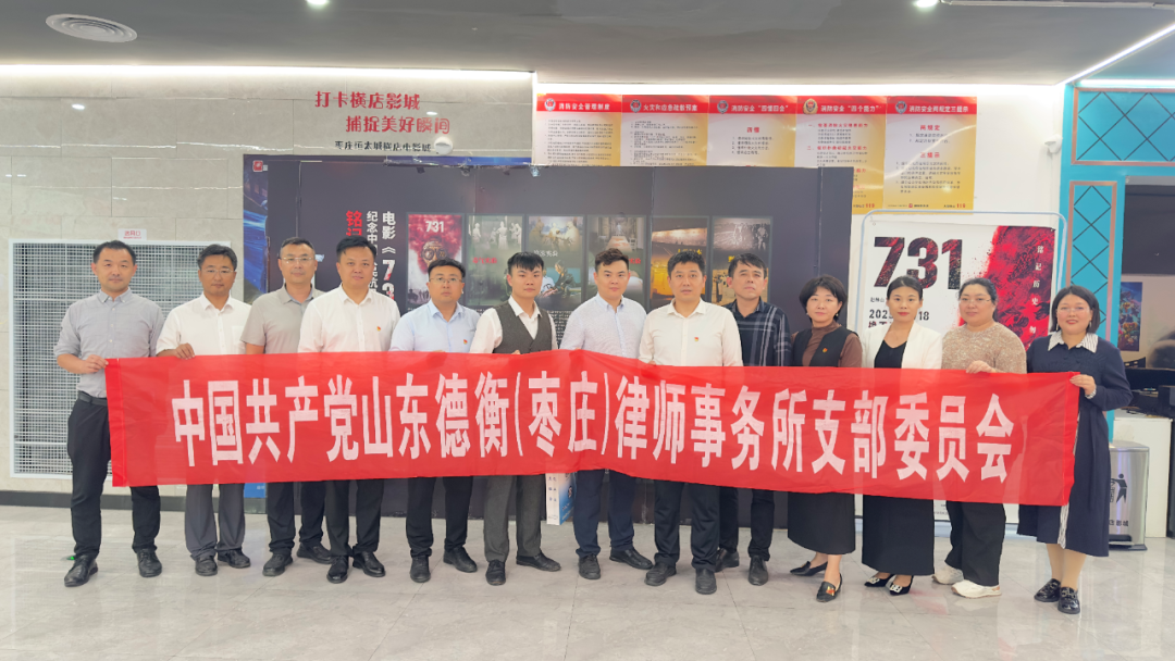 当历史的镜头缓缓拉开,侵华日军 731 部队的反人类暴行再次刺痛人心。为纪念中国人民抗日战争暨世界反法西斯战争胜利 80 周年,深入贯彻落实习近平总书记 “铭记历史、缅怀先烈、珍爱和平、开创未来” 的重要指示精神,9月28日,中共山东德衡(枣庄)律师事务所支部以 “铭记历史,珍爱和平” 为主题开展主题党日活动,组织党员及入党积极分子集体观看爱国主义题材电影《731》,在历史的回望中接受深刻的精神洗礼。