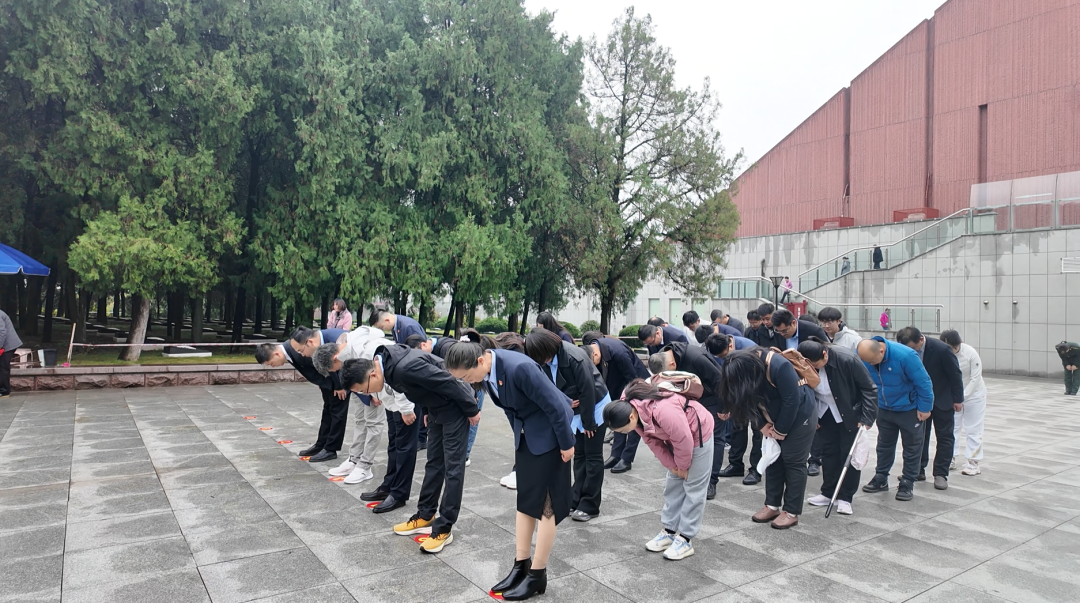 细雨蒙蒙,青山肃立。在庄严肃穆的孟良崮战役纪念馆前,全体人员整齐列队,党员律师统一身着正装、佩戴党徽,神情凝重。纪念馆外墙镶嵌的子弹壳无声诉说着烽火岁月的壮烈,营造出浓厚的革命教育氛围。在粟裕将军墓前,怀着对革命先烈的崇高敬意,举行庄重的敬献花篮仪式。山东德衡(枣庄)律师事务所管理委员会主任冯克法缓步上前整理花篮缎带,洁白的菊花与鲜红缎带相映,寄托着对革命先烈的深切缅怀。全体人员肃立默哀、行三鞠躬礼,表达对英烈的崇高敬意与无限追思。“我志愿加入中国共产党……”在党支部书记朱超的领誓下,全体党员面向党旗庄严宣誓,重温入党誓词。铿锵誓言回荡在苍松翠柏之间,既是对革命先辈的深情告慰,更是对法治初心与职业使命的郑重承诺。