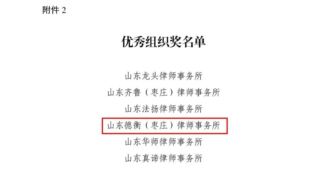 近日,枣庄市律师协会正式发布《关于对 2025 年度枣庄律师优秀论文评选获奖人员及单位通报表扬的决定》。在本次评选活动中,山东德衡(枣庄)律师事务所凭借扎实的组织动员能力与深厚的专业研究积淀,一举斩获 “优秀组织奖”,所内律师撰写的 6 篇论文脱颖而出,分别荣获一等奖 1 名、二等奖 2 名、三等奖 3 名,用专业实力彰显了德衡律师的行业担当与学术风采!