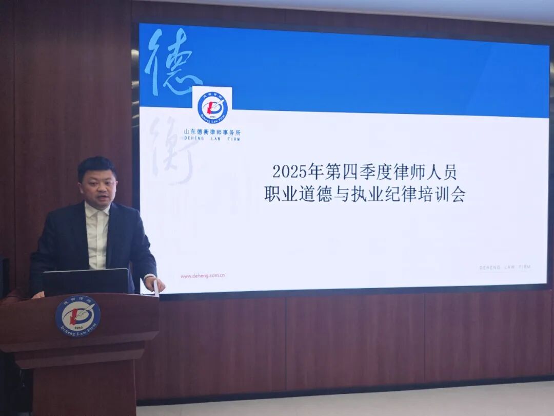 为全面提升律师职业素养与执业水平,强化执业风险防范意识,推动律所持续健康发展,2025年12月12日下午,山东德衡(枣庄)律师事务所组织全体律师召开 2025年第四季度执业道德与执业纪律专题培训会。 培训伊始,山东德衡(枣庄)律师事务所纪律主任米亮通报了2025年度第四季度律所纪律督查工作情况,针对立结案审批、利益冲突检索、律师服务收费等关键环节的督查结果进行详细说明,指出当前执业中存在的细节疏漏与改进方向,为后续规范执业划定重点整改领域。 随后,他重点传达《律师行业反洗钱工作管理办法》《涉税专业服务管理办法(试行)》《关于律师办理群体性案件指导意见》及《律师执业权益保障工作指导意见》、《律师事务所案件管理办法(试行)》等核心文件精神,结合典型违规案例,对反洗钱、涉税业务、办理群体性案件等方面的纪律要求进行细致解读,明确“红线” 与 “底线”。 本次执业道德与纪律培训会,以问题为导向、以规范为目标,通过政策解读与案例剖析的深度融合,让 “红线” 不可越、“底线” 不可破的理念深入人心。后续,山东德衡(枣庄)律师事务所将持续深耕规范化建设,以常态化培训锤炼职业素养,以严格督查压实执业责任,稳步推进律师队伍专业化、合规化水平再提升,为律所长远发展夯实根基。 扫码关注我 一起感受法律的魅力