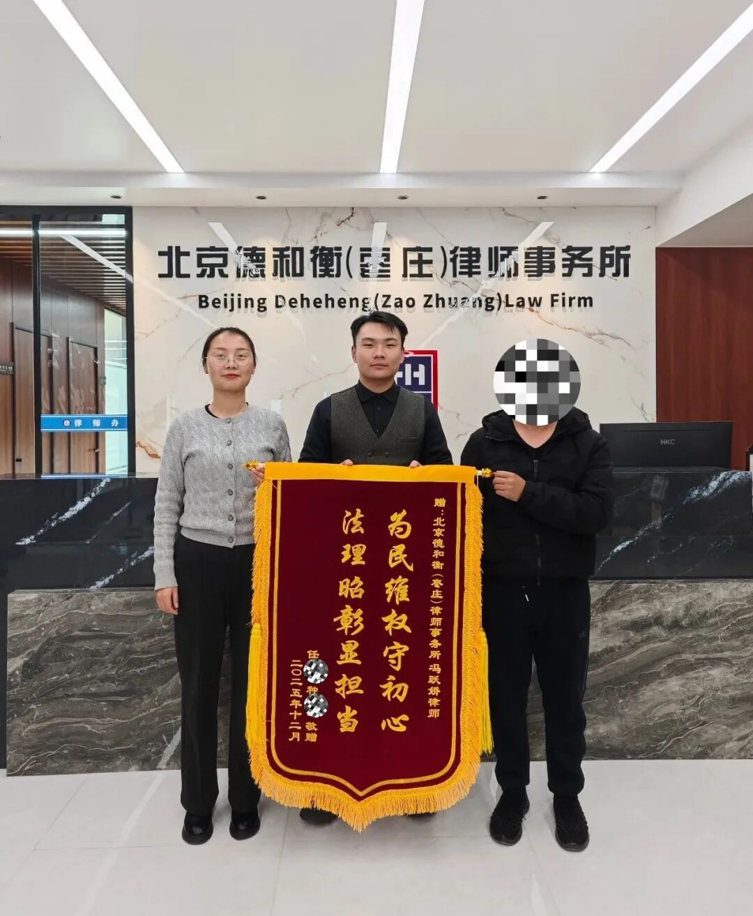 四位工友常年从事工地作业,工程结束后,承包方却以各种理由拖欠劳务费和租赁费。多次协商无果后,他们怀揣最后希望来到山东德衡(枣庄)律师事务所,找到冯跃娇律师。冯律师与助理刘相旋组成服务小组,迅速投入工作。面对证据链不完整、责任主体模糊的难题,他们细致指导当事人补充关键证据,精准锁定目标。基于扎实的法律分析,团队制定了清晰的诉讼策略,并在庭审中以充分的证据和专业的陈述,最终赢得胜诉。判决后,团队持续跟进执行,直至最后一笔款项到位,真正实现了“案结事了”。“历时近三年,心里的石头终于落地了!”工友们言辞恳切,感激之情溢于言表。而对山东德衡(枣庄)律师事务所而言,这不仅是又一起成功办结的案件,更是其深入践行“人民律师”理念的缩影。德衡律师始终坚信,法律的力量在于守护每一个普通人的尊严与权利。他们以专业筑就信任,以行动诠释担当,在每一起案件中倾注匠心,让公平正义成为当事人真切可感的温度。两面锦旗,承载着当事人的认可,也激励着全所同仁在“执律为民、服务社会”的道路上,继续坚定前行。